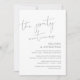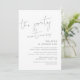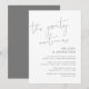 Ceci est la carte d'invitation de la fête de fuite de mariage, avec un design de script gris foncé minimaliste / minimalisme (La fête continue)