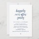 Belle écriture moderne et décontractée, en police de caractères bleue marine, Annonce de fuite en mariage, carte d'invitation (Fête pour toujours). C'est parfait pour votre réception de mariage et votre fête de célébration post-mariage. Ajoutez vos détails dans la même police / lettrage.