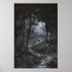 Full Moon Dark Forest with Fawn Deer Art Dark Poster