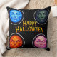 A burst of joyful energy to your spooky decor with this laughing full moon double sided throw pillow the back feature is a giant masterfully detailed full moon caught in a fit of hysterical laughter complete with joyful tears surrounding it are the four elemental moon faces the serene blue the fiery orange, the enigmatic green and the winking pink watching over the celebration