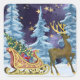 Full Moon Over Reindeer With Sleigh Quadratischer Aufkleber