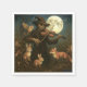 Spooky Szene mit einem Vollmond, der auf einem Feld von Mais leuchtet, eine gruselige Vogelscheuche spielt die Geige, während einige Tiere anschauen, kleine Kreaturen und eine Eule sind Teil dieses seltsamen Halloween-Bild.