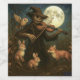Spooky Szene mit einem Vollmond, der auf einem Feld von Mais leuchtet, eine gruselige Vogelscheuche spielt die Geige, während einige Tiere anschauen, kleine Kreaturen und eine Eule sind Teil dieses seltsamen Halloween-Bild.