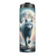 Dies ist eine fantasiebezogene Illustration eines majestätischen weißen Wolfs, der aus einem felsigen Terrain auftaucht. Der Wolf läuft auf einem Pfad von Steintreppen, umgeben von den Ruinen eines Felsgewölbes. Der Hintergrund umfasst einen großen, hellen Vollmond und einen mystischen Himmel mit Silhouetten von Bäumen und fliegenden Vögeln. Die ganze Szene ist mystisch und bezaubernd, mit einem ätherischen Glühen, das vom Mond und vom Wolf ausgeht.
