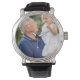 Uhr, Vintage Männeruhr mit schwarzem Lederarmband
