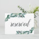Mit diesem schicken botanischen Schild geben Sie bei Ihrer Hochzeit reservierten Platz ein. Personalisieren Sie sich mit einer Textzeile in kalligrafischer Schriftzeichen (mit "Reserviert" angezeigt), gerahmt von üppiger Aquarell und Eukalyptus-Blätter.
