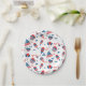 Spaß 4. Juli Teller Papier hellblauer Hintergrund mit roten Weiß-und Blauen Designs auf der Platte. Spaß und Perfekt für Ihre 4. Juli-Feiern