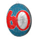 Ein lustiges 60. Geburtstag Foto Dartboard in Rot und Blau. Für Sie konzipiert, um im Foto Ihres 60. Geburtstagsempfängers aus der Vergangenheit oder ein aktuelles Foto hinzuzufügen. Hergestellt von Sarah Trett. Ein lustiges Geschenk für einen sechzigsten Geburtstag.