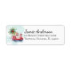 Dieses weihnachtliche Adressetikett zeichnet sich durch ein Aquarellbild des Weihnachtsmanns aus, das in einem rosa Flamingo-Floaty mit einer Palme im Hintergrund liegt. Ideal, um Ihren Urlaubsnachrichten eine lustige Touch am Strand hinzuzufügen