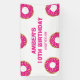 Fun beigne rose thème fête d'anniversaire bienvenue bannière signe. Modèle coloré avec dessin de beignets arrosés. Conception gaie pour la célébration des enfants.