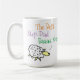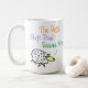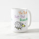 Tasse für den besten Step-Vater. Der sonnige Cartoon eines Schafes auf einem Hügel. Das Schaf sagt "Best Step Vater Baaa None". Design-Wiederholungen auf beiden Seiten