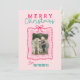 Diese skurrile Weihnachtskarte ist mit einem festlich rosa Bilderrahmen-Design mit lustigen Retro-Schriftart, Sternen, Schneeflocken und einem Bogen ausgestattet. Passen Sie diese Karten mit der Personalisierungsfunktion einfach an.