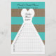 Wenn die Braut türkisfarben ist und Sie ein Brautparty suchen, sehen Sie nicht weiter. Dieses Spiel macht Spaß und türkis! Das Design zeichnet sich durch solides Türkis auf der Rückseite und abwechselnde Streifen von türkis und Burlap auf der Vorderseite, die den Hintergrund für ein Brautkleid, auf dem das Spiel gespielt wird. Die Party versuchen aus den Namen der Braut und des Bräutigams möglichst viele Wörter zu machen. Copyright henishouseuse paper