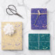 Fun Bright Hand gezogen Lila Aquamarin Peach Xmas Geschenkpapier Set