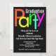 Bright neon fluorescent et fête festive invitation est idéal pour les filles, garçons ou adultes ados qui ont une discothèque festive amusante et futuriste ou la fête de graduation à thème de la danse. Arrière - plan noir avec néon fluorescent de couleur vive de lettrage de bloc et un style de texte moderne.