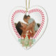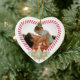 Spaß und verspieltes Herz-Foto-Sake-Ornament. Keepake-Ornament kann mit dem Jahr angepasst werden, und zwei Fotos, eins vorne und eins auf der Rückseite. Die handbemalten Aquarellbäume, der Zuckerrohr und die pfefferminzigen Bonbons bilden den Rahmen für die Süßspeise. Handgezeichnet Kunstwerk von Moodthology Papery.
