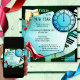 Silvesterabend Party Einladung mit farbenprächtigem skurrilen Design mit Uhr, Champagner und musikalischen Elementen mit festlichen Schuhen. Schön für ein Party!