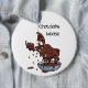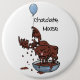 Ein humorvoller Knopf oder Abzeichen, mit einem frechen, komischen Elch, der die schmelzende Schokolade genießt. Der Ballon, der an einen seiner Geweihten gebunden ist, trägt zum Spaß bei. (Dieses Design passt in alle Button-Größen.)