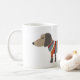 Niedliche kleine Dackel Wurst oder Dackel Hund in gemütlicher Strickmode. Originelle Kunst von Nic Squirrell.