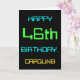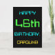 Dieses einfache und lustige Geburtstagskarten-Design enthält eine Nachricht wie "HAPPY 46. BIRTHDAY, CAROLINE!". Es bietet auch ein lustiges Aussehen, das durch das digitale Computing inspiriert wird. Der Name auf der Vorderseite und die Meldung auf der Innenseite können personalisiert sein. Es könnte an jemanden geschickt oder gegeben werden, der seinen sechsundvierzigsten Geburtstag feiert und vielleicht als Programmierer, Softwareentwickler, Datenbankadministrator, Netzwerkadministrator, Elektronikingenieur arbeitet (oder vor dem Ruhestand gearbeitet hat) oder der auf andere Weise gerne Computer benutzt. [~Z0000100]