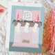Eine großartige Weihnachtskarte für Ihre lustige Familie! Auf dieser Karte befindet sich ein Mantel mit rosa Bottlebürstenbäumen, Diskobällen und Strümpfen. Foto und Familienname auf der Rückseite können mit der Personalisierungsfunktion angepasst werden.