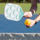 Dieses Design zeichnet sich durch traumhafte pastellfarbene Regenbögen vor einem blassen Aquahintergrund aus, mit weißen Initialen in einem lustigen Text-Stil vor einem Aqua-Farbblock. Mit diesem lustigen Muster können Sie Ihr Pickleball-Paddel individuell gestalten und Ihre Dinks über den Regenbogen schicken. Das Paddel wird mit weißem Trimm dargestellt, aber es werden andere Optionen angeboten.