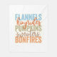 Dieses dynamische und strukturierte Herbstdesign hebt die wesentlichen Elemente der Herbstsaison mit den Worten "Flannels", "Hayrides", "Pumpkins", "Sweaters" und "Bonfire" hervor. Jedes Wort wird in fett gedruckten Großbuchstaben mit einer verwitterten Textur angezeigt, die dem Design ein rustikales, Vintages Gefühl verleiht. Die Farbpalette umfasst coole Blues, warme Orangen, erdige Grüntöne und weiche Braun, die die verschiedenen Farbtöne des Herbstes einfangen. Die Wörter "Hyrides" und "Sweaters" sind in einem fließenden, kursiven Drehbuch geschrieben, das wunderbar mit dem Blocktext kontrastiert und dem Design eine Touch von Eleganz und Bewegung hinzufügt. Kleine Sterne-Akzente sind um den Text verstreut und verleihen dem Text einen zusätzlichen Charme und Spielfreude.