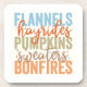 Dieses dynamische und strukturierte Herbstdesign hebt die wesentlichen Elemente der Herbstsaison mit den Worten "Flannels", "Hayrides", "Pumpkins", "Sweaters" und "Bonfire" hervor. Jedes Wort wird in fett gedruckten Großbuchstaben mit einer verwitterten Textur angezeigt, die dem Design ein rustikales, Vintages Gefühl verleiht. Die Farbpalette umfasst coole Blues, warme Orangen, erdige Grüntöne und weiche Braun, die die verschiedenen Farbtöne des Herbstes einfangen. Die Wörter "Hyrides" und "Sweaters" sind in einem fließenden, kursiven Drehbuch geschrieben, das wunderbar mit dem Blocktext kontrastiert und dem Design eine Touch von Eleganz und Bewegung hinzufügt. Kleine Sterne-Akzente sind um den Text verstreut und verleihen dem Text einen zusätzlichen Charme und Spielfreude.