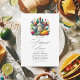 Diese lebendige und festliche mexikanische Fiesta "Let's Taco Bout a Probe Dinner" lädt zum Verweilen ein. Mit spielerischen Tacos und Tequila-Grafiken in kühnen Farbtönen erweckt es den Geist eines lustigen Abends mit Familie und Freunden. Das individuell anpassbare Design beinhaltet ein Monogramm auf dem Tequila Flaschenetikett für eine personalisierte Touch. Ideal für Paare, die einen Fest-Flair zu ihrer Probe-Dinner-Veranstaltung gewollt haben!