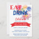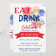 Invitation de fête 4 juillet tendance et amusante avec feux d'artifice colorés.
