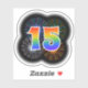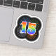 Dieses lustige, aufregende Aufkleber-Design zeichnet sich durch ein farbenfrohes, durch das Bersten von gefeierten Feuerwerken inspiriertes Muster aus, zusammen mit der Zahl "15" mit einem farbenfrohen Regenbogen-artigen Spektrum oder Gradientenmuster. Ein Aufkleber wie dieser kann Spaß machen, wenn jemand zum fünfzehnten Geburtstag feiert, oder vielleicht zum fünfzehnten Hochzeitstag eines Paares, oder zum anderen 15. [~Z0000362]