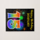 Dieses lustige, lebendige Puzzle-Design zeichnet sich durch ein farbenfrohes, von feierlichen Feuerwerken inspiriertes Muster aus, zusammen mit der Zahl "15" mit einem bunten, von Regenbogen inspirierten Farbverlaufsmuster auf schwarzem Hintergrund. Es enthält auch einen anpassbaren Namen und eine Ereignismeldung, wie z. B. einen Geburtstagsgruß. Ein Rätsel wie dieses könnte eine lustige Art sein, eine Geburtstagsbotschaft zu senden, um jemandes fünfzehnten Geburtstag zu würdigen. [~Z0000329]