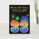 Fun Fireworks + Regenbogenmuster "33" Geburtstag # Karte