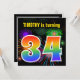 Dieses lustige, lebendige Geburtstagsfeierdesign besticht durch ein farbenprächtiges, aufstechendes, feierliches Feuerwerk, das inspirierte Muster, zusammen mit der Zahl "34" mit einem farbenfrohen Regenbogen-inspiriert Spektrum oder Gradientenmuster. Der Name auf der Vorderseite kann personalisiert sein. Auf der Rückseite finden Sie anpassbare Informationen über das Party. Geburtstagsfeierlichkeiten wie diese werden vielleicht geschickt, um Gäste zu einer Geburtstagsparty einzuladen, die zum Feiern des vierunddreißigsten Geburtstages von jemandem veranstaltet wird. [~Z0000337]