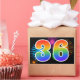 Dieses lustige, lebendige Aufkleber-Design zeichnet sich durch ein farbenprächtiges Muster aus, das von feierlichen Feuerwerken inspiriert wird, sowie durch die Zahl "36" mit einem farbenfrohen Regenbogenmuster auf schwarzem Hintergrund. Aufkleber wie diese können in einem Party zum 36. Geburtstag von jemandem verwendet werden, oder vielleicht zum 36. Hochzeitstag eines Paares oder zu einem anderen 36. [~Z0000324]