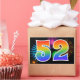 Dieses lustige, lebendige Aufkleber-Design zeichnet sich durch ein farbenfrohes Muster aus, das von feierlichen Feuerwerken inspiriert wird, sowie durch die Zahl "52" mit einem farbenfrohen Regenbogenmuster auf schwarzem Hintergrund. Aufkleber wie diese können in einem Party zum 52. Geburtstag eines Mannes verwendet werden, oder vielleicht zum 52. Geburtstag eines Paares oder zum 52. [~Z0000324]