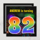 Dieses lustige, lebendige Geburtstagsfeiereinladungs-Design zeichnet sich durch ein farbenprächtiges, bestechendes und inspiriertes Feuerwerk aus, zusammen mit der Zahl "82" mit einem bunten Regenbogen-ähnlichen Spektrum oder Gradientenmuster. Der Name auf der Vorderseite kann angepasst werden. Auf der Rückseite finden Sie personalisierte Details zum Party. Einladungen zum Geburtstag, wie diese, können an potenzielle Teilnehmer zu einer Geburtstagsparty geschickt werden, die zum Feiern des zweiundachtzigsten Geburtstags von jemandem veranstaltet wird. [~Z0000337]