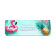 Address Labels - Mit charmanten Flamingo Floppeln und tropischen Ananas in einem coolen blauen Pool laden diese Adressetiketten zum Verweilen ein. Die lebhafte Palette an aquamarinen Wassern, Rosa und Orange verkörpert die Wärme und Freude der Sommergeburtstage. Ideal, um Ihren Einladungen eine persönliche und festliche Touch hinzuzufügen oder Dankeschön an Sie zu richten.