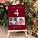 Mit den bordeauxroten Tischnummer-Karten, die jede Tischnummer den Fotos der Braut und des Bräutigams im gleichen Alter entsprechen, können Sie sich bei der Gestaltung der Hochzeitsfeier amüsieren. Zum Beispiel, für Tabelle 4, personalisieren Sie die Tischnummer mit "4" und fügen Sie Fotos der Braut und Bräutigam, wenn sie 4 Jahre alt waren.