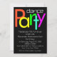 Bright neon fluorescent et fête de danse festive invitation est idéal pour les filles, les garçons ou les adultes ados qui ont un divertissement et futuriste boîte de nuit festive ou de la danse thème événement spécial ou fête d'anniversaire. Arrière - plan noir avec néon fluorescent de couleur vive de lettrage de bloc et un style de texte d'ordinateur numérique. Customisez-le en ligne avec les détails et les informations de votre fête.