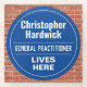Vergnügen Sie sich mit einem verglasten Untersetzer für einen Arzt oder General Practitioner. Blaue und weiße Plakette. Bearbeiten Sie das Design, um die Formulierung so zu ändern, dass der Empfänger des Geschenks Anzug erhält.