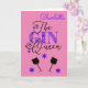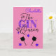 Eine lustige Gin Queen Geburtstagskarte mit zwei schwarzen Gin-Gläsern, umgeben von blauen Sternen, mit der Aufschrift "The Gin Queen" in extravaganter Schrift mit blassrosa Hintergrund . Eine lustige stylish Karte, um Gin Liebhaber (oder wirklich jeder wirklich) für jeden Anlass, wie Geburtstage, oder einfach nur hallo zu geben. Kann angepasst werden, indem Sie den Namen auf der Vorderseite der Karte ändern, und die Innenseite kann personalisiert werden, indem Sie das Ereignis oder der Grund für die Karte ändern, dann fügen Sie Ihre eigene persönliche Nachricht. Ein stilvolles Design für jeden Gin-Liebhaber.
