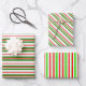 Diese festlichen Weihnachtsfarben, die Papierblätter umwickeln, sind mit grünen, weißen und roten Streifen in Mustern gestaltet. Feierliche Verpackungsblätter wie diese können bei der Vorbereitung von Geschenken zum Weihnachtsfeiern verwendet werden.
