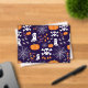 niedliches Halburbanbild in dunkelblau, weiß und orange