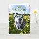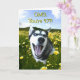 Ein lächelnder sibirischer Husky Hund in wilden Blume und ein OMG bist du 47?! Ein lustiges Inneres auch. Nur eine niedliche Art, einen 47. Geburtstag zu feiern! Und lass ihnen, dass sie gut aussehen, weil sie 47 Jahre alt sind.