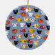 Viele niedliche skurrile Katzen auf blauem Hintergrund.