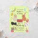 Faites la fête de votre enfant en toute liberté grâce à l’invitation Fun Kitty Cats Birthday Party! Cette adorable invitation présente un arrière - plan vert tendre avec des illustrations ludiques de fête, dont deux chats au centre portant des casquettes d'anniversaire, l'un léchant de la crème sur sa patte et l'autre à côté d'un gâteau d'anniversaire. Autour d'eux se trouvent un chat blanc enroulé, un chat endormi qui fait la sieste sur un cadeau, et des détails festifs comme des ballons, des cadeaux, des serpentins, et une bannière colorée. Au centre inférieur, il y a un espace personnalisable pour ajouter tous les détails de votre fête d’anniversaire. Doux, fantaisiste et amusant — c’est l’invitation idéal pour les petits amoureux de les chats !