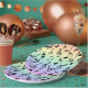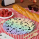 Eine Reihe von schwarzen Noten auf sanften pastellfarbenen Regenbogen-Party-Tellern. Ideal für Partys, die Musik lieben! Passende Servietten sind erhältlich. Designed by Heard_, and 369.