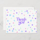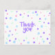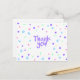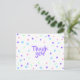 Eine verspielte Dankescharte mit moderner handgeschriebener Typografie steht im Zentrum eines Konfetti-Musters im Memphis-Stil aus rosa Dreiecken, lila Kreisen, blauen Spiralen, gewellten Knicken und winzigen Strichen auf knusprig weiß. Die helle pastellfarbene Party-Palette und das Motiv geometrischer Formen schaffen ein fröhliches, optimistisches Aussehen, das für jeden Anlass geeignet ist. Das Gegenteil wird für das Handschreiben eines benutzerdefinierten Notizes oder einer Wertgutachtermeldung leer verlassen.