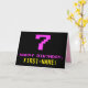 The front of this fun, nerdy, and geeky birthday themed greeting design for large number 7 and the message "HAPPY BIRTHDAY", colored pink, along with a bold yellow customizable recipient name. The text feature a look inspirred by that of retro 8-bit style video game and computer game graphics from the 1970s and 1980s and the background is colored black. The inside feature a customizable birthday greeting message, or could perhaps be cleared and left blank if a message is to be written by hand instead. Trassia personalized birthday card like this might be a fun way to acknowledge somebody's seventh birthday. [~ Z0000478]